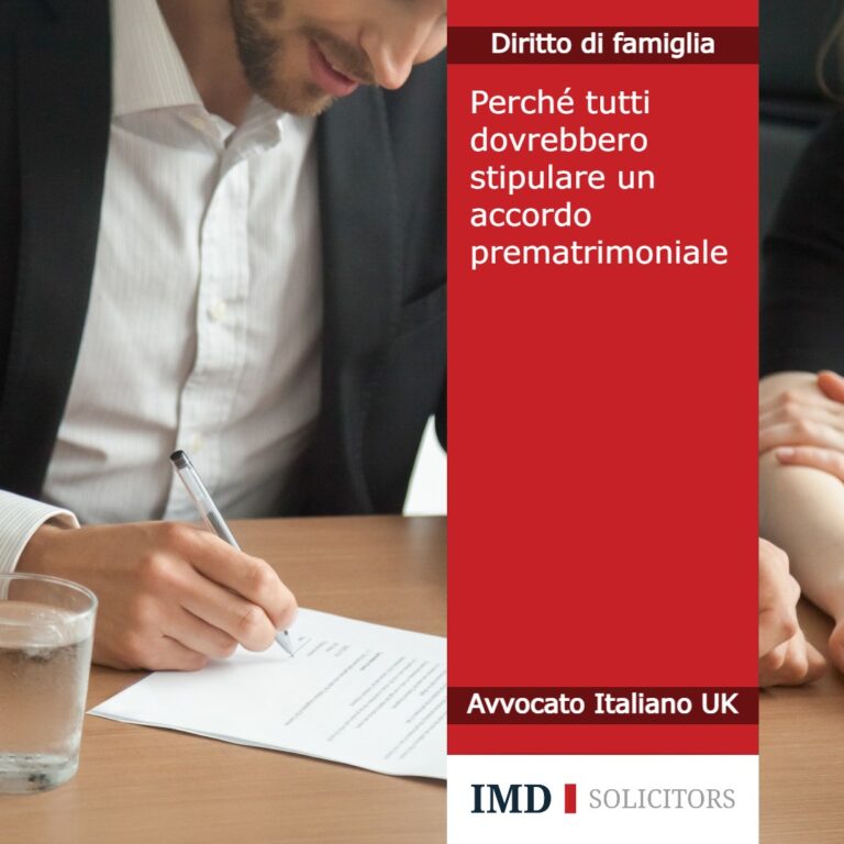 Gli accordi prematrimoniali non sono solo per le persone abbienti. Sia che si preveda di ereditare in futuro attività considerevoli o si sia in possesso di beni di famiglia che si desiderano mantenere all’interno della stessa, tutti devono prendere in considerazione l’eventualità di stipulare un accordo prematrimoniale. Nessuno contrae matrimonio o un’unione civile pensando che […]